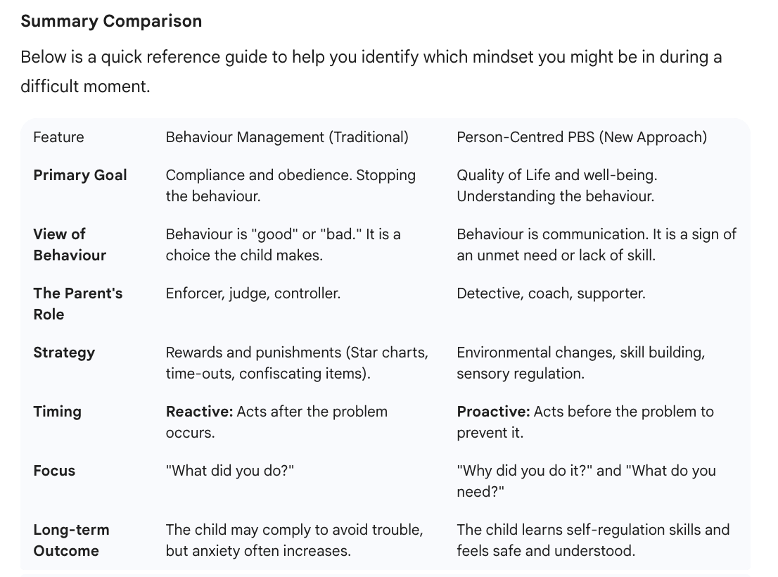 There is a different way. It requires a significant shift in mindset, which can be scary, but it is a shift that moves away from "managing" your child and toward "supporting" them. This is the difference between Behaviour Management and Person-Centred Positive Behaviour Support (PBS).